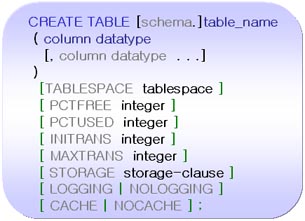 - MAXTRANS : 하나의 데이터 블록에 지정될 수 있는 트랜잭션 최대 수를 지정 한다.