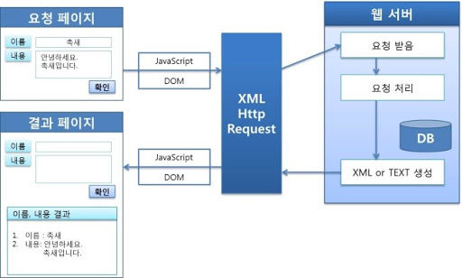 -DOM을 사용한 웹 브라우저의 내용은 객체화되어 있는데, 이것을 이용해서 비동기적으로 서버와의 통신을 수행할 수 있다.