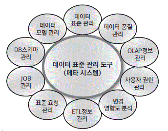 | 데이터 표준 관리 | 표준 단어, 표준 도메인 등의 표준 관련 사전을 관리하는 기능 |