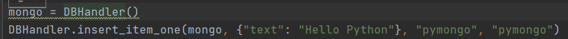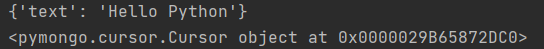 1)위 와 같이 mongodb로 미리 생성해둔 데이터베이스 pymongo에 {"text":"Hello Python"}데이터를 입력시켰습니다.
