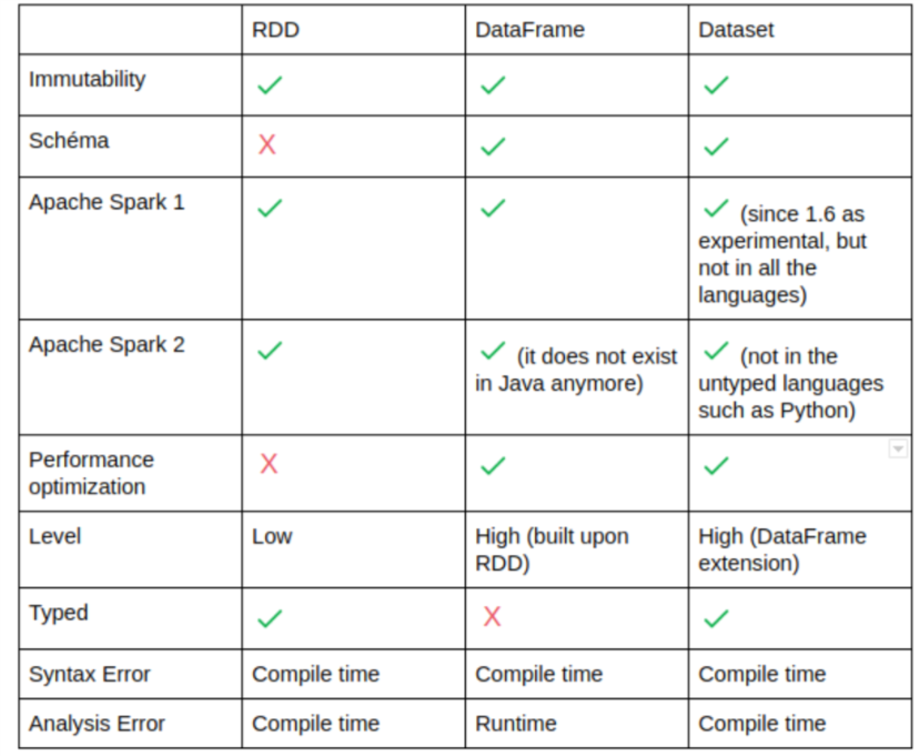 출처 : A comparison between RDD, DataFrame and Dataset in Spark from a developer’s point of view