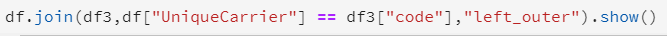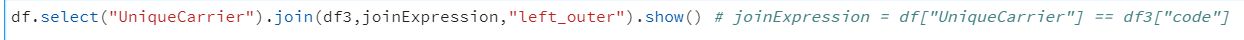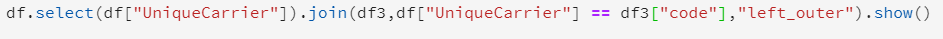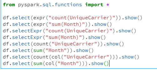 .agg(F.count(F.col("UniqueCarrier")).alias("delaycount")