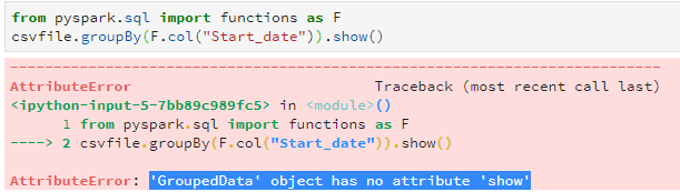 (그렇지 않으면 GroupedData 객체로만 나오고 .show() 메서드로 조회를 할 수 없다.)