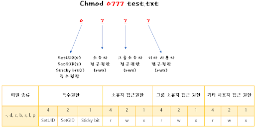 보안을 위해 linux는 소유자의 권한,그룹의 권한, 소유자가 아닌 사람의 권한을 구분한다.