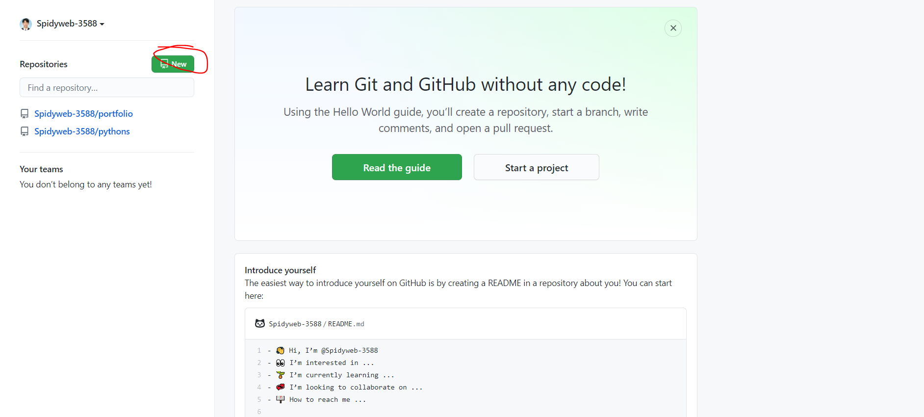 2) New 버튼을 눌러 새 repository를 생성