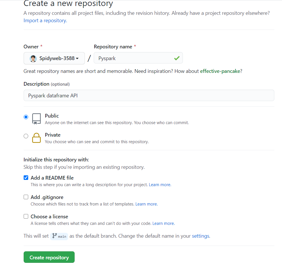 이것으로 github 계정과 원격 저장소인 git hub repository 생성을 마쳤습니다.