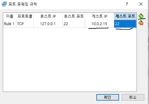 virtualbox 설정 - 네트워크 - 포트포워딩