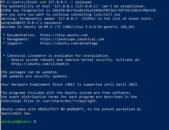 powershell 창에서 ssh 127.0.0.1 -l 자신의 ubuntu 계정입력