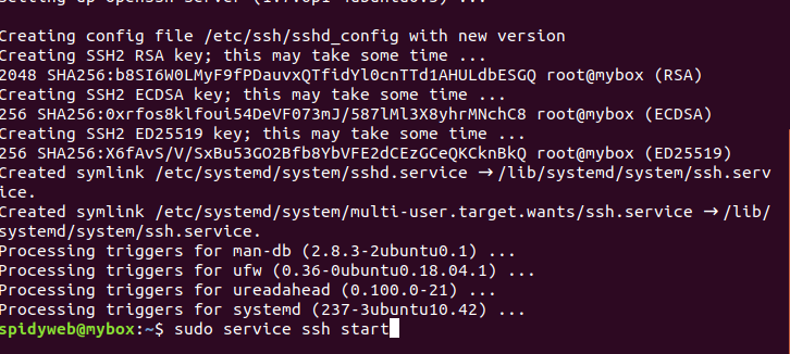 우분투 ssh접속완료