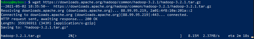 wget https://downloads.apache.org/hadoop/common/hadoop-3.2.1/hadoop-3.2.1.tar.gz