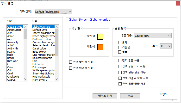 Notepad에서 읽어 들이는 파일의 형식에 따라 다양한 언어 보기를 지원해줍니다.