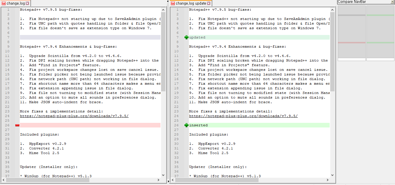 이런식으로 추가되거나 변경된 것을 비교하여 보여줍니다.