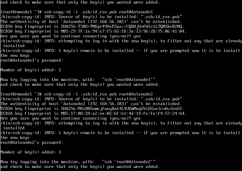 ssh-copy-id -i .ssh/id_rsa.pub root@datanode1