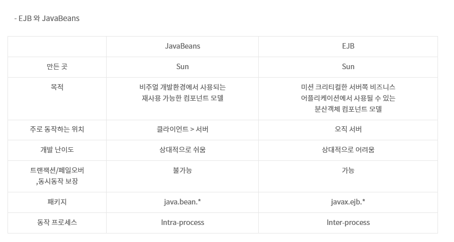 -자바는 프로그램 기본단위가 클래스이고, 자바빈은 클래스들이 복합적으로 이루어진 구조