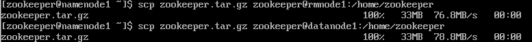 scp zookeeper.tar.gz zookeeper@rmnode1:/home/zookeeper