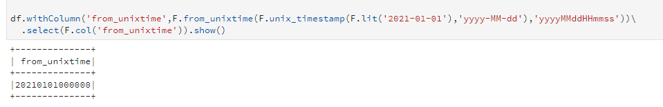 unix_timestamp(lit('2021-02-20'),'yyyy-MM-dd')) 와같은 형태로 사용 - format은 yyyy부터 밀리초까지 조정할 수 있으며, yyyy만 할경우 01월 01일 00:00:00 시간으로 조정된다.
