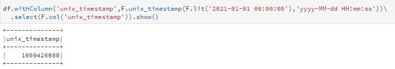- spark 에서는 unix_timestamp(col('columnname','format')과 같은 형태로 사용되어야 한다.