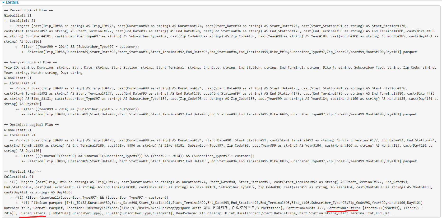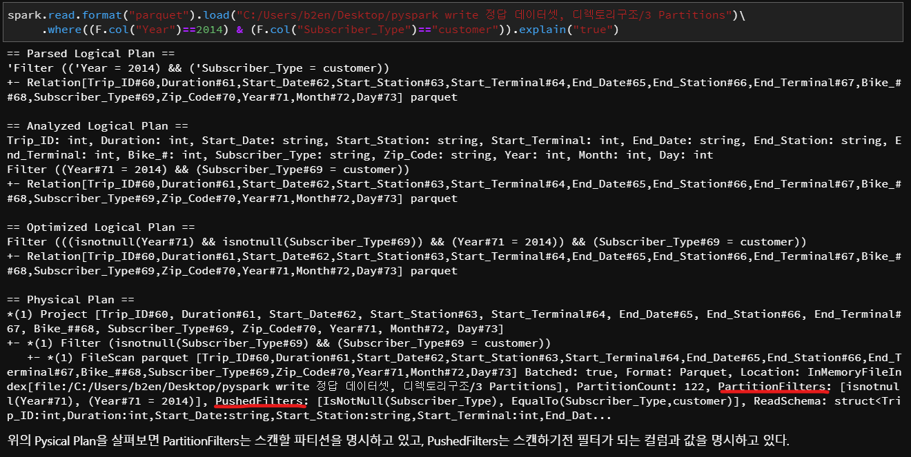 - Spark가 HDFS나 S3와 같은 저장소에 디렉토리와 파일을 읽을 때 지정된 파티션의 파일만 읽을 수 있도록 성능 최적화를 가능하게 함