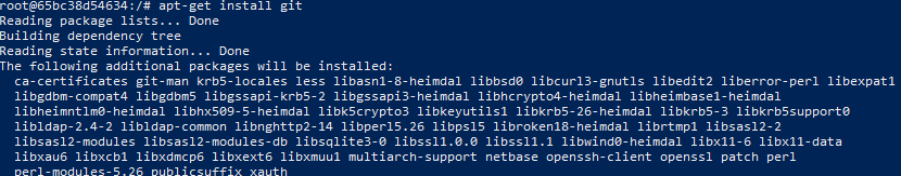 여기까지 완료가 되었다면, 컨테이너의 상태는 ubuntu:18.04에 git을 설치가 된 상태입니다.