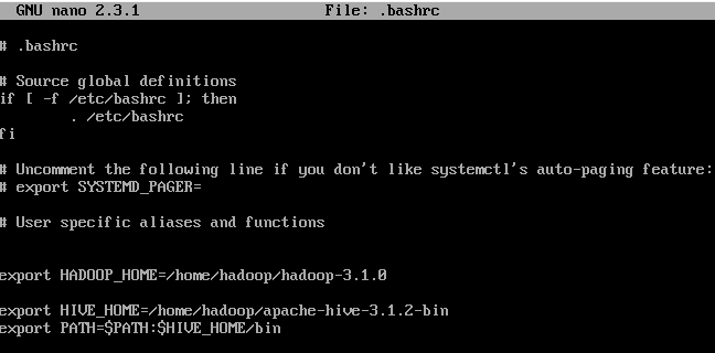 export HIVE_HOME=/home/hadoop/apache-hive-3.1.2-bin