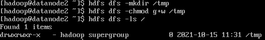 1-2) hdfs dfs -chmod g+w /tmp