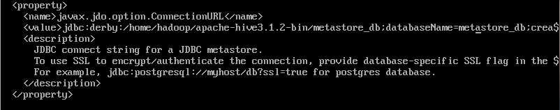 jdbc:derby:/home/hdoop/apache-hive3.1.2-bin/metastore_db;databaseName=metastore_db;create=true