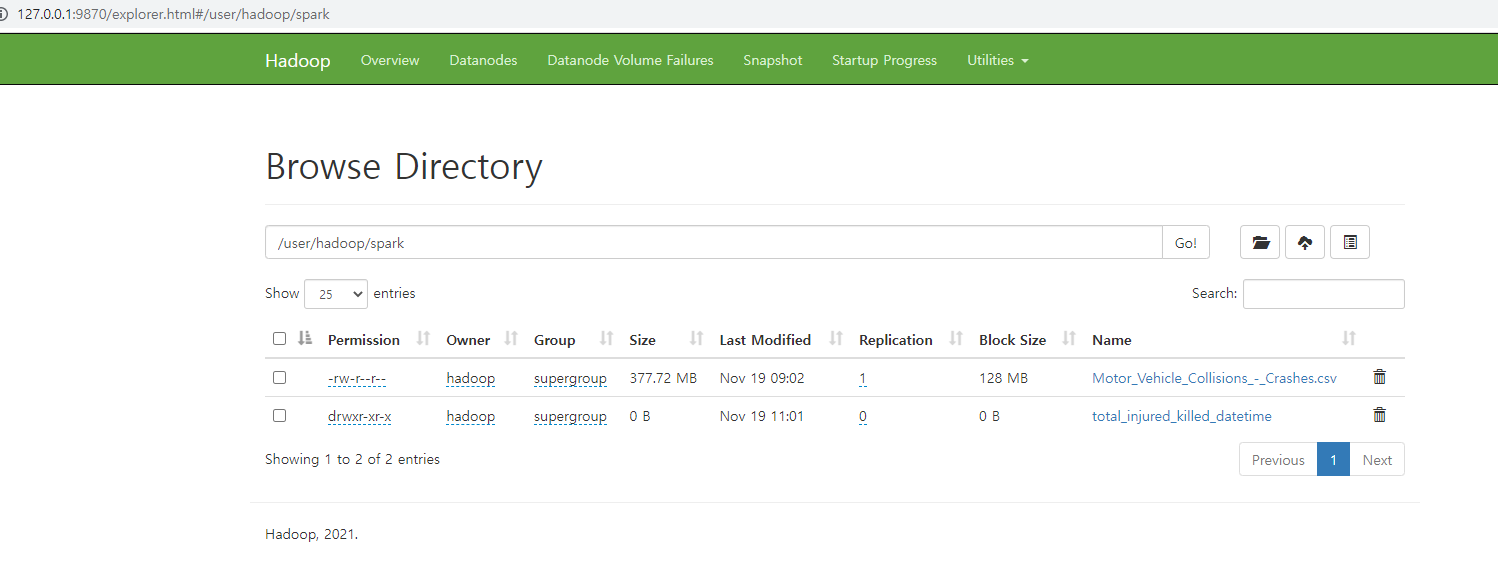 2)hdfs에 /user/hadoop/spark 디렉토리 생성