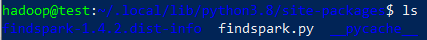 pip3 install findspark -> /home/hadoop/.local/lib/python3.8/site-packages 에 들어감