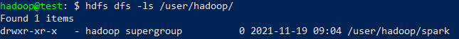 hdfs dfs -mkdir /user/hadoop/spark