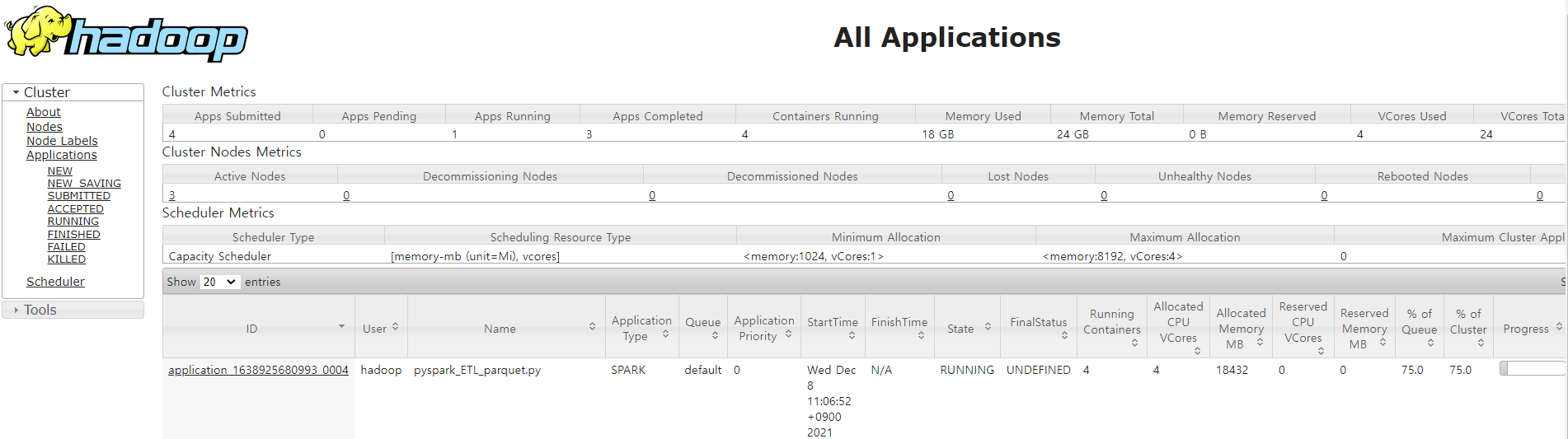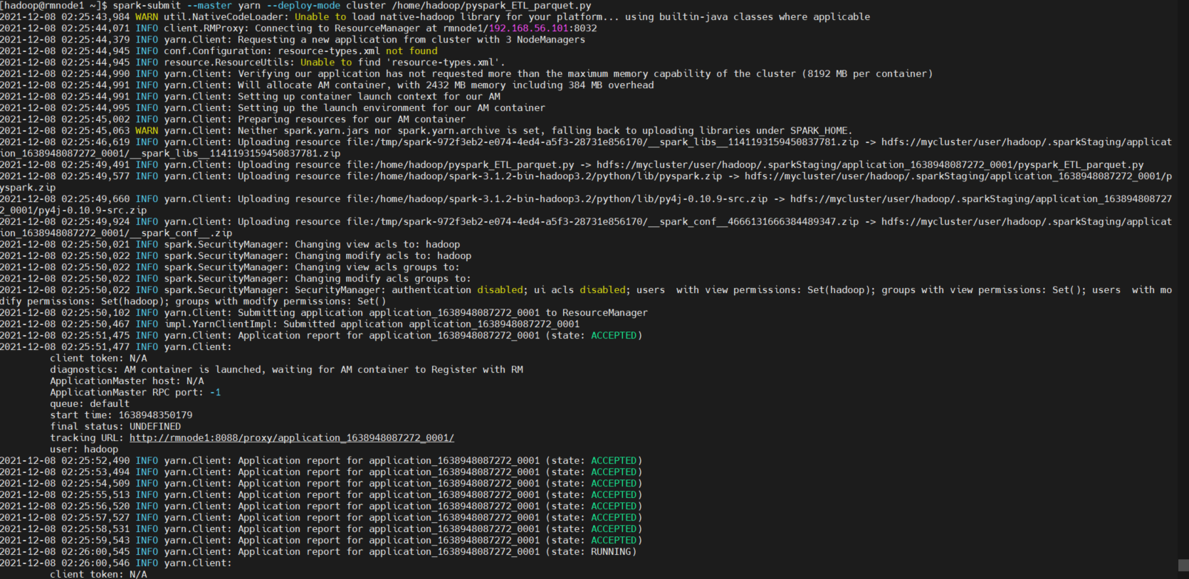 spark-submit --master yarn --deploy-mode cluster /home/hadoop/pyspark_ETL_parquet.py
