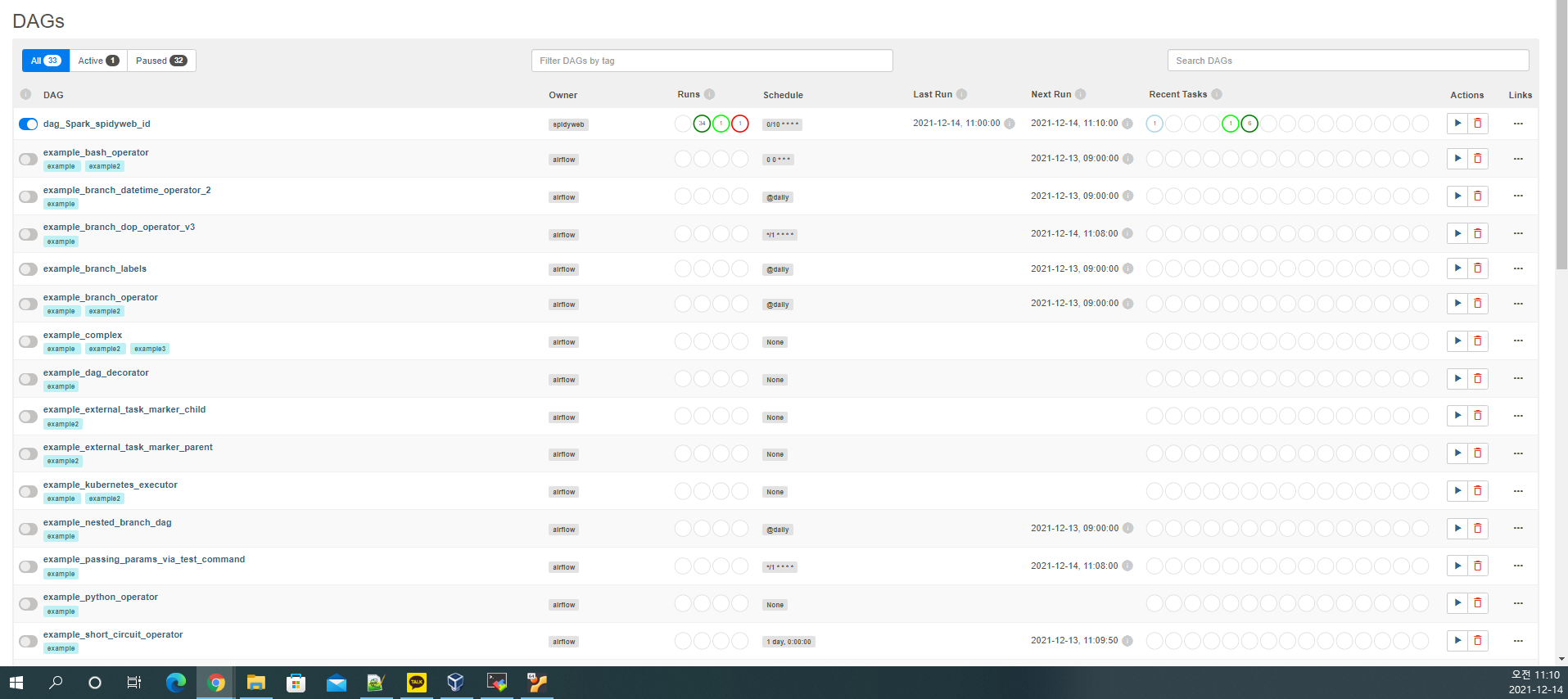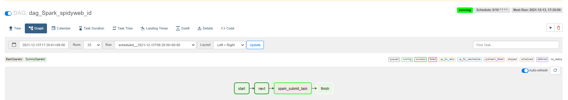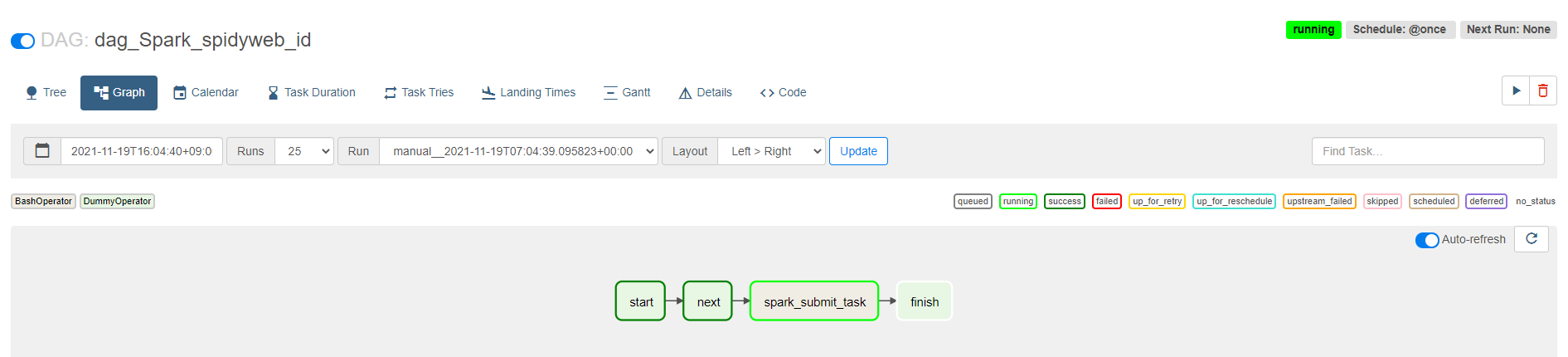 dag_Spark_spidyweb_id dag가 생성된 것을 알 수 있습니다.