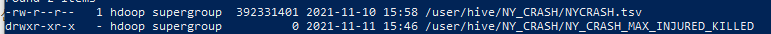 hdfs dfs -ls /user/hive/NY_CRASH