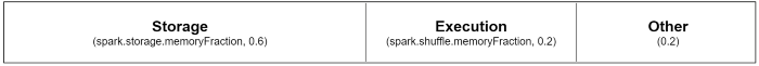 메모리 공간은 3개의 영역으로 분리되어 있고, 각 영역의 크기는 JVM Heap 크기를 Spark Configuration에 설정된 고정 비율로 나누어 정해짐