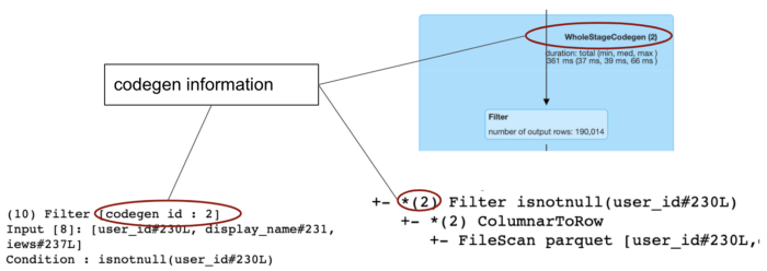 UI에서 여러 연산자들이 큰 파란색 직사각형안에 그룹핑되어 있는데, codegen stages로 구별된다.
