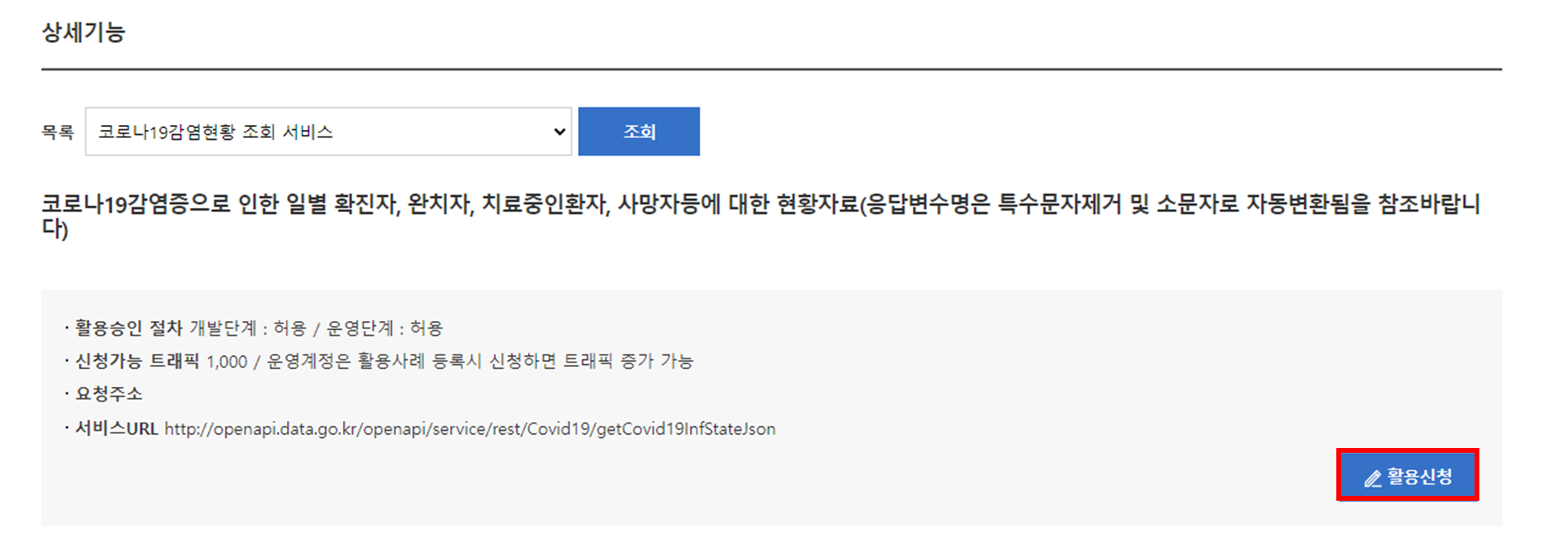 2. 코로나 감염현황 API 데이터 활용 신청