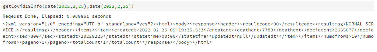 이번 포스트는 공공데이터 코로나 API를 request로 받아 bs4로 lxml로 변환 후 pyspark를 이용해 데이터 처리를 해보겠습니다.