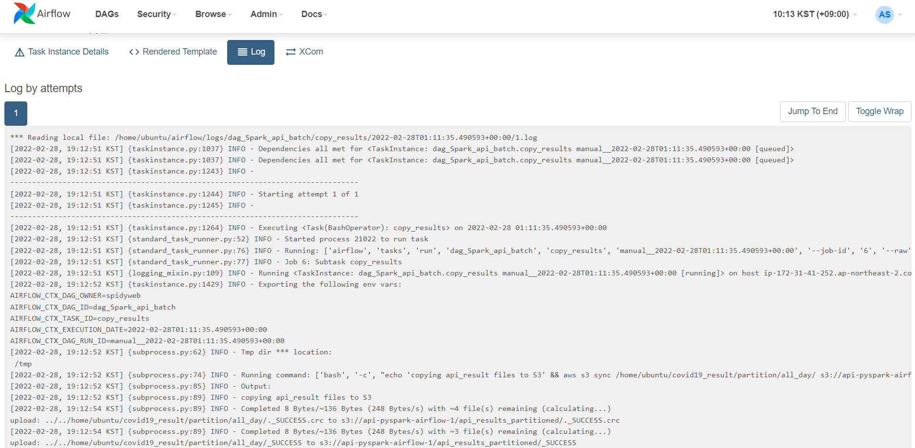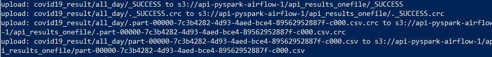aws s3 sync /home/ubuntu/covid19_result/partition/all_day/ s3://api-pyspark-airflow-1/api_results_partitioned/ && aws s3 sync /home/ubuntu/covid19_result/all_day/ s3://api-pyspark-airflow-1/api_results_onefile/