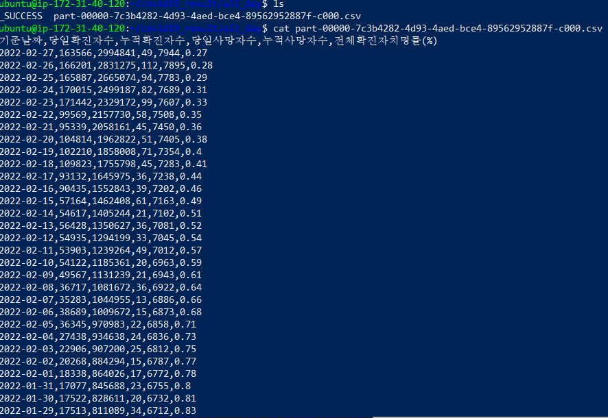 #S3에 pyspark job 실행결과를 복사한다.