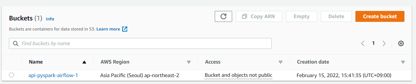 S3에 전송을 하기전 bucket을 create해둡니다.