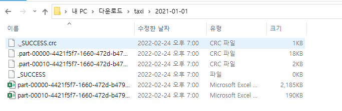 안의 csv파일을 열어보니 2021-01-01 데이터만 뽑히어 저장된 것을 알 수 있습니다.