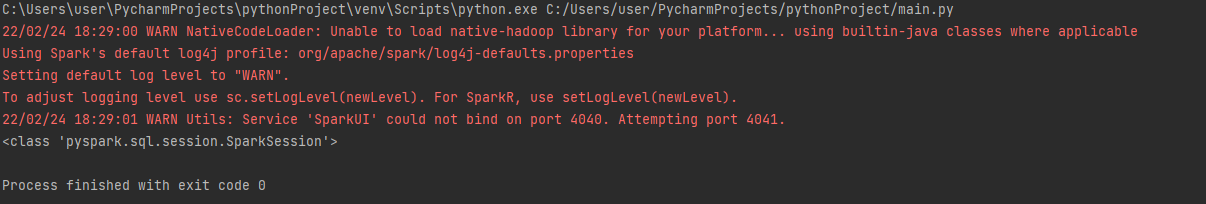 SparkSession을 생성하는 코드를 실행시키면 역시 오류가 나는데,