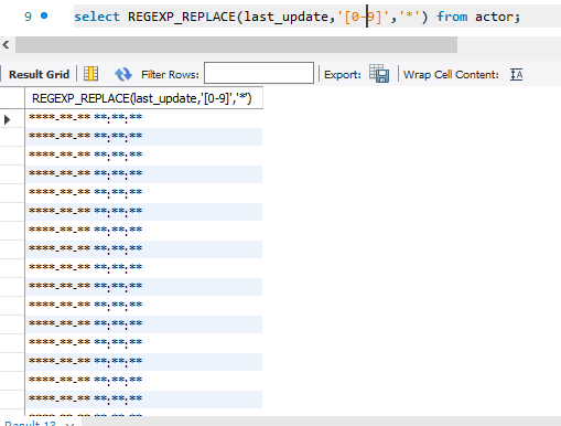 actor 테이블의 last_update 컬럼이 숫자가 있으면 *로 변환