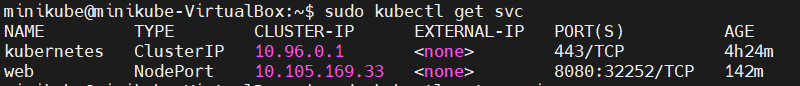 sudo kubectl get svc