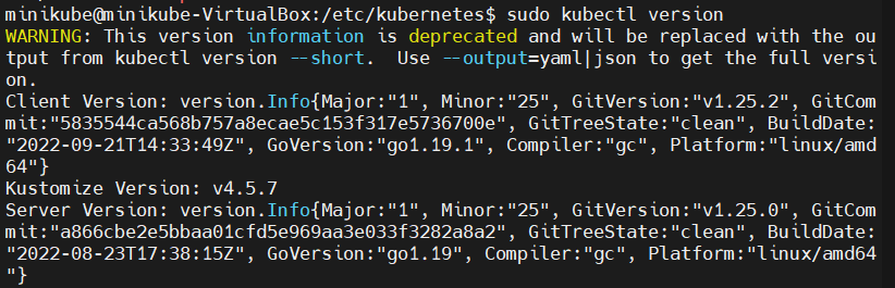 sudo kubectl version