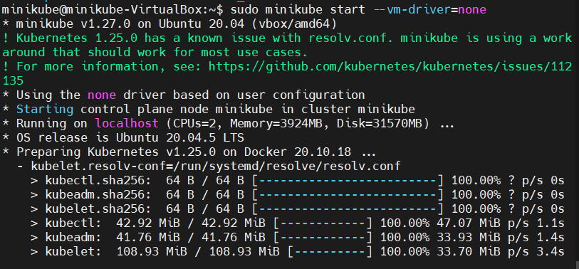 sudo minikube start --vm-driver=none