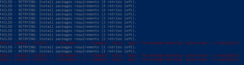 *ERROR 'RETRYING: Install packages requirements' 하면서 실패로 뜬다.