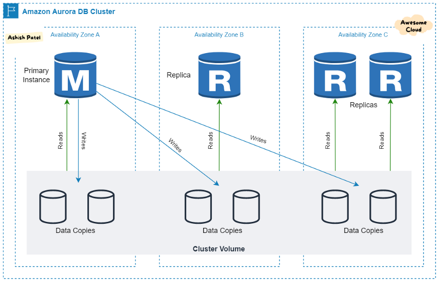 | 아키텍처 디자인 | 1.신뢰할 수 있고, 결함에 관대한 설계 2.인스턴스와 분리된 스토리지 3.1개의 인스턴스에 6개의 복사본이 3개의 가용영역에 나뉘어 있음 |