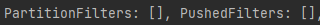 데이터를 읽어오기만 하면 데이터가 파티션(디스크)된지에 상관없이 실행계획 PartitionFilters 와 PushedFilters에는 아무것도 안나옴