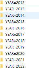 읽은 파일 수: 22개 disk partition (YEAR=2022 폴더 내의 파일 수)