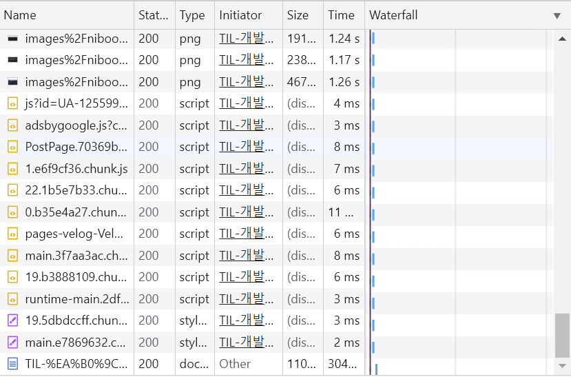로드되고 있는 페이지를 요청하는 타임라인을 표시
